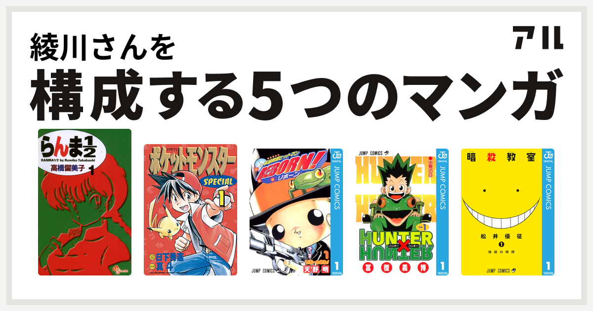 綾川さんを構成するマンガはらんま1 2 ポケットモンスタースペシャル 家庭教師ヒットマンreborn Hunter Hunter 暗殺教室 私を構成する5つのマンガ アル